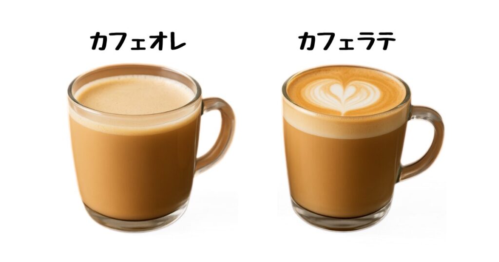 - 味わいはカフェラテのほうが濃厚で、カフェオレはマイルドで飲みやすい。