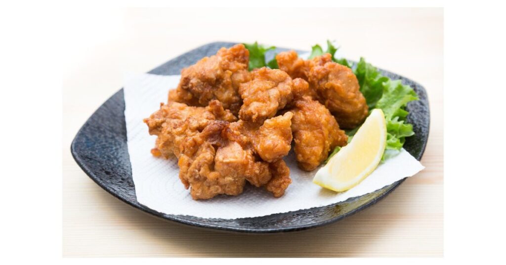 主に鶏肉にしょうゆや酒、にんにく、生姜などの調味料で味付けをし、片栗粉または小麦粉をまぶして揚げた料理です。